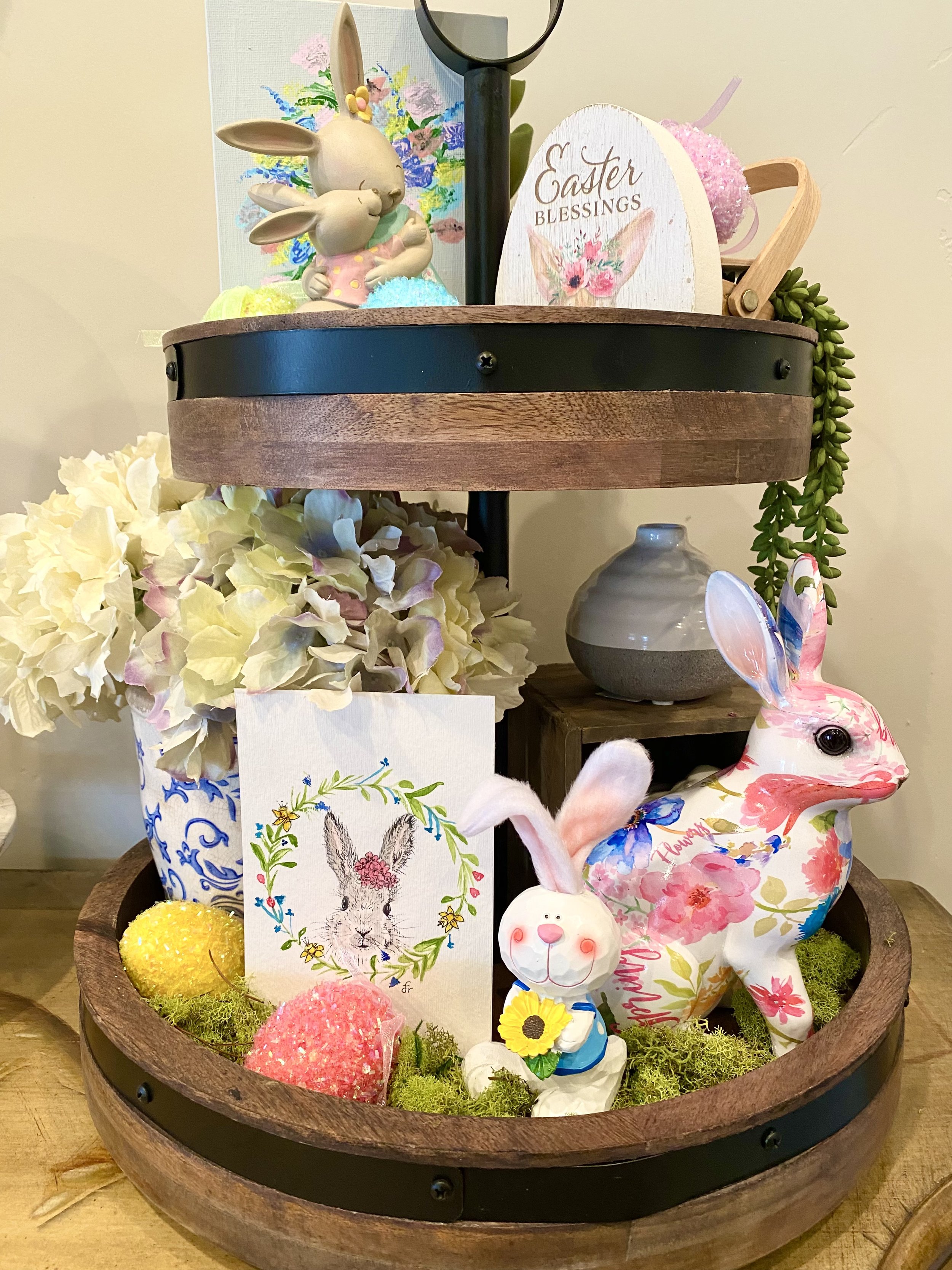 Easter themed tiered tray