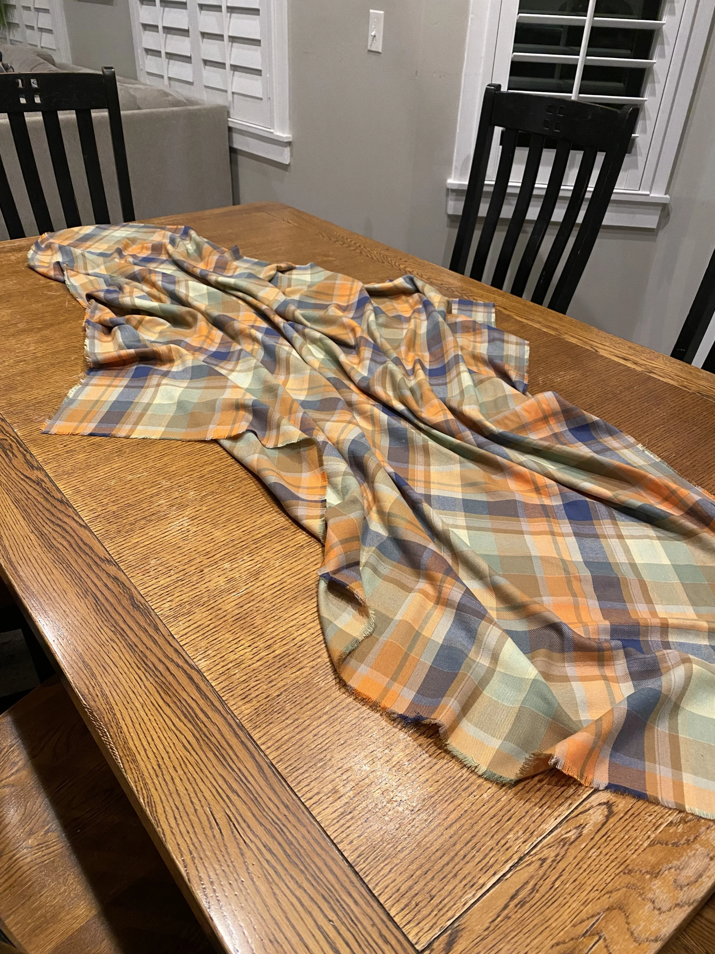 I went to Hob Lob and looked for flannel, it’s not super similar but I liked it. You could also go treasure hunting (thrifting) and look for throws or scarves for this vibe. Or just use a table cloth and cover the whole table, like normal people. I decided not to because I love my wood table! I love the worn parts of it. It’s where my family eats, countless homework hours and projects have been done on it. Someday I might refinish it, but I’m feeling too nostalgic for now, lol