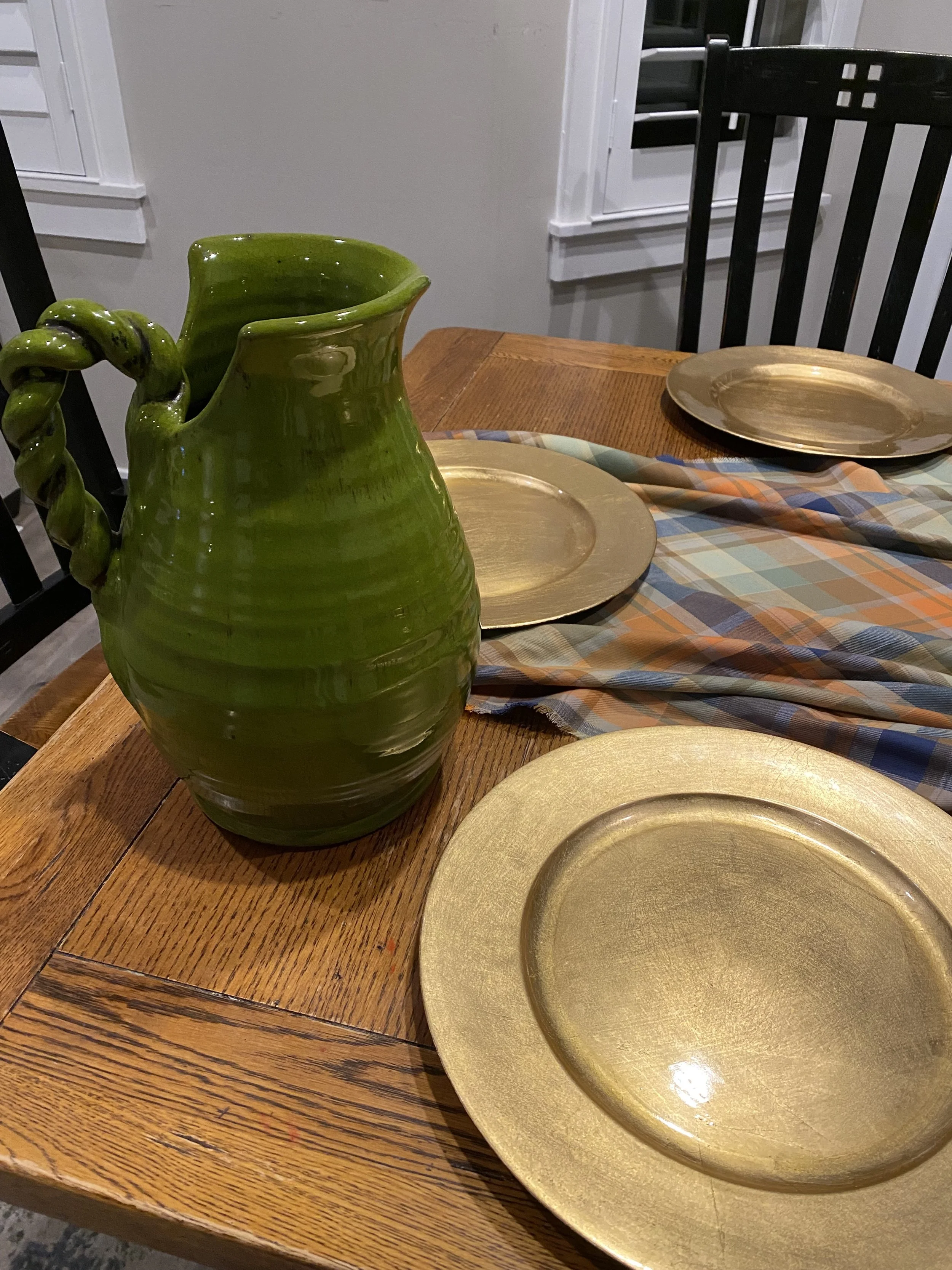 Side note, along with the basic plates, I have this gorgeous gold flatware set that my mom gave me when we moved her to assisted living. I handwashed theses along side of my mom growing up and I’m still using them and handwashing them and they are still beautiful. Good memories! And they remind me of her, she loved entertaining. I do have a cheap set of silver toned flatware that I use when I want silver.