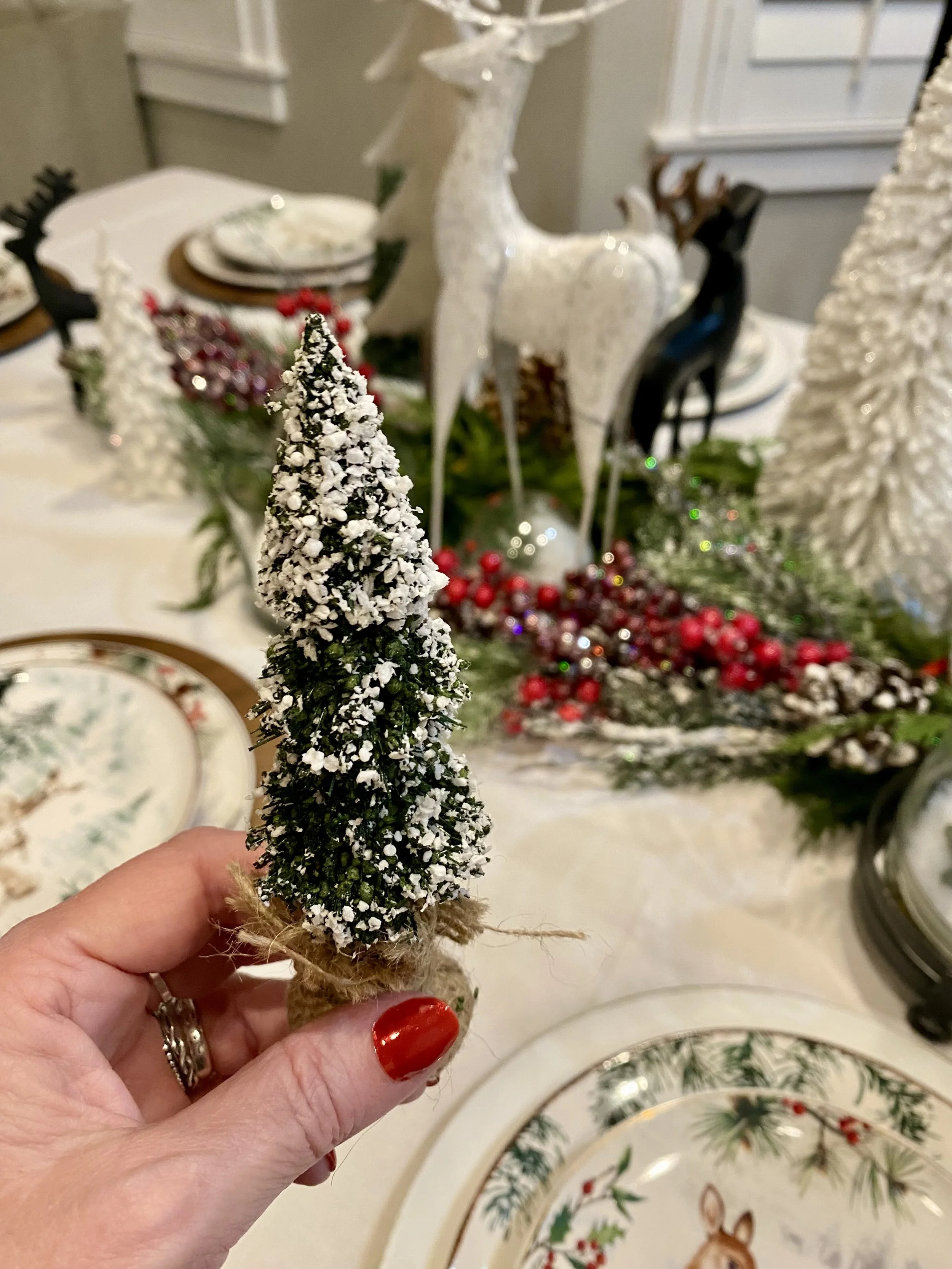 Working on the Snowy Forest Christmas Table